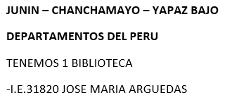 BIBLIOTECA I.E.31820 JOSE MARIA ARGUEDAS